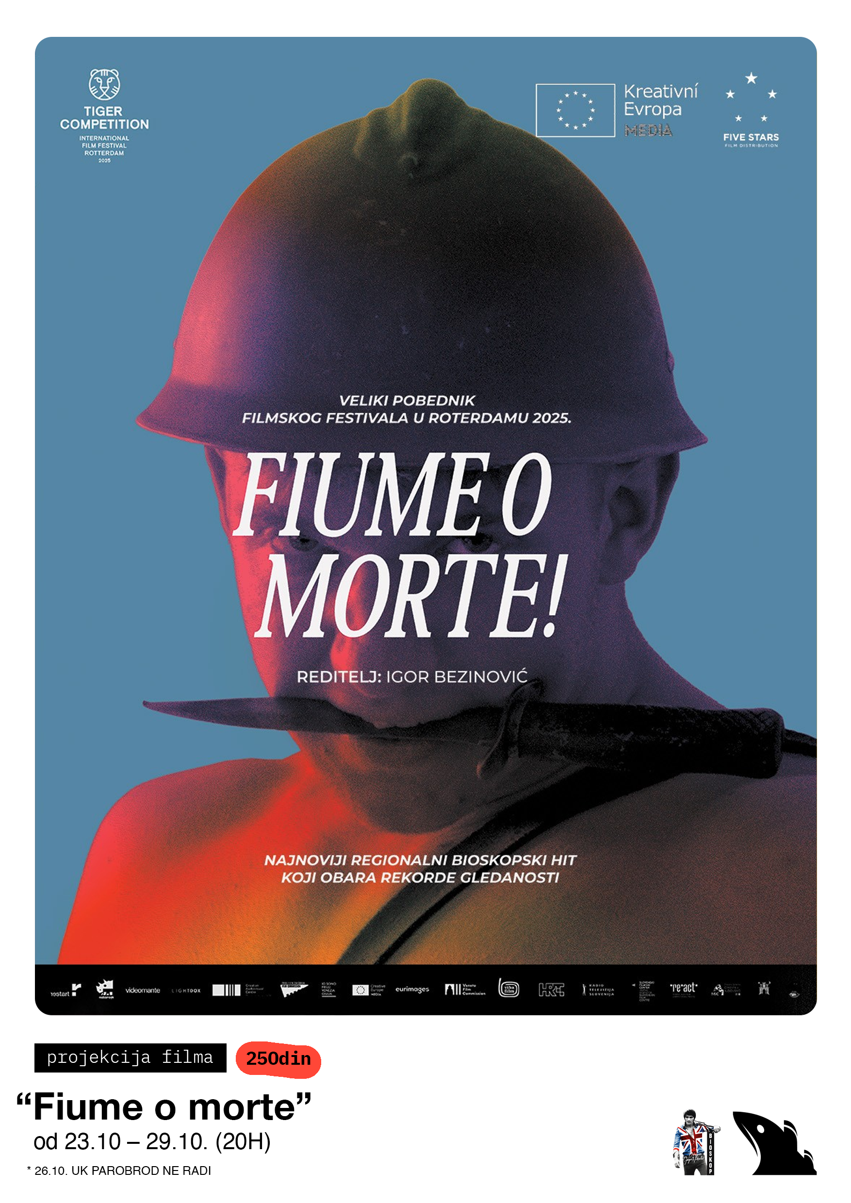 Fiume o morte je dokudrama reditelja Igora Bezinovića. Kroz dramatičnu rekonstrukciju jednog od težih delova Riječke istorije, reditelj prikazuje duh italijanskog pesnika, novinara, arstokrate i vojnog oficira, fašiste Gabriela Danincija koji je izazvan rezultatom Pariske mirovne konferencije okupirao Rijeku na godinu i po dana. Reditelj upošljava stanovnike Rijeke koji govore fjumanskim dijalektom da ožive llik neslavnog Danuncija. Kroz sat i po ove doku drame Riječani otkrivaju kako je izgledalo 16 meseci okupacije i kako su se italijanske vlasti nosile sa odbeglim oficirom koji je zaposeo tuđi grad.